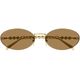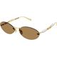 Estes oculos de sol de armacao oval exalam sofisticacao com sua armacao em metal, adornada com o iconico logotipo vazado da Gucci e detalhes em delicadas perolas nas hastes A combinacao perfeita de elegância atemporal e luxo moderno
