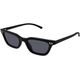 A colecao de oculos Pre-Fall 2025 combina com sucesso as silhuetas cobicadas de decadas passadas com um toque contemporâneo de logotipo Aqui, esta armacao de acetato preto combina com um G entrelacado e o logotipo Gucci gravado