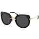 Oculos de sol Miu Miu SMU02X tem armacao borboleta confeccionada em acetato preto e conta com lentes cinzas que garantem protecao contra os raios UV