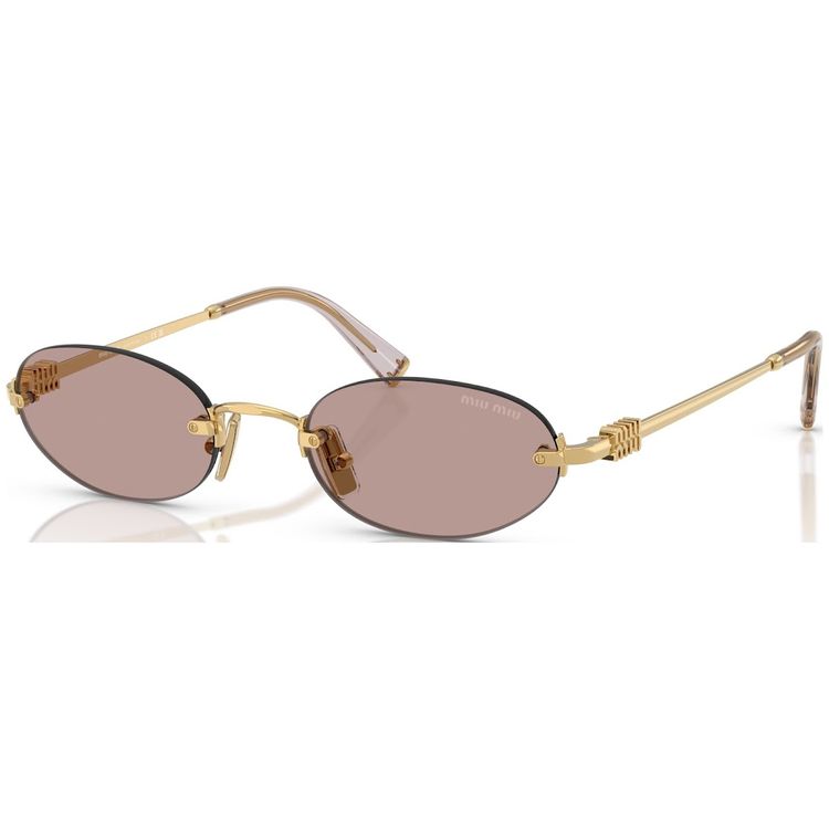 Atitudes classicas e sofisticadas se misturam nos oculos de sol Miu Miu A armacao de metal ultraleve apresenta lentes ovais livres enriquecidas com uma paleta de tons alegres O logotipo vertical da Miu Miu assina as hastes ultrafinas