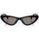 Oculos de sol em acetato com um toque sofisticado A armacao frontal suavemente curvada apresenta um formato gatinho distinto e e combinada com hastes planas que se afinam graciosamente em direcao as pontas, exibindo o logotipo vertical da Miu Miu