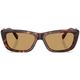 Este modelo de oculos de sol e caracterizado por um formato retangular classico com volumes marcantes que conferem personalidade Os perfis arredondados presentes no inicio de cada haste exibem o iconico logotipo da Miu MiuO logotipo vertical da Miu Miu esta embutido nas hastes e coberto com uma camada transparente de acetato para um acabamento premium
