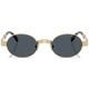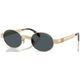 Refletindo a atitude ousada e original da Miu Miu, este modelo de oculos de sol apresenta um formato oval com um toque retro Uma ponte nasal acentuada realca a estetica nostalgica do design O logotipo da Miu Miu em relevo adorna as hastes de metal antes de se afinarem em ponteiras de acetato