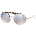 Oculos de sol Prada Absolute Ornate SPR 52US tem armacao redonda produzida em metal dourado,com ponte em acetato havana amareloO modelo conta com charmosos detalhes nas laterais da lenteSuas lentes cinzas e azul degrade garantem protecao contra os raios UV