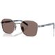 Oculos de sol metalicos com um toque casual A armacao retangular apresenta lentes hexagonais e hastes finas adornadas com a iconica placa de metal com o logotipo Prada Lettering