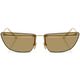 Oculos de sol em metal com uma silhueta ultraleve As lentes sem aro integradas a armacao em metal criam uma estetica clean e sofisticada O logotipo de letras Prada e delicadamente gravado nas hastes