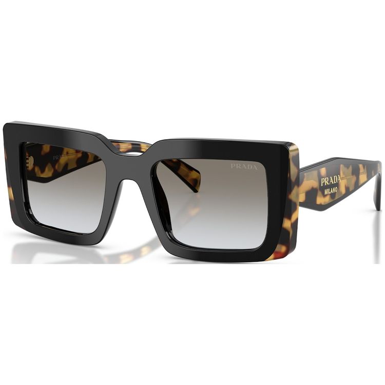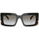 Oculos de sol em acetato com armacao retangular oversized e espessura consideravel A aplicacao refinada de placas de cores contrastantes nas hastes geometricas confere um toque sofisticado e contemporâneo Logotipo da Prada em letras