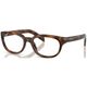 Criado com a dedicacao da Prada a sofisticacao discreta, este modelo de oculos de grau em formato de almofada chama a atencao com sua armacao retangular refinada e hastes finas Uma placa metalica com o logotipo da marca, que se estende por toda a haste, oferece um contraste tonal marcante com o acetato presente na maioria dos modelos