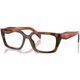 A essencia do requinte moderno da Prada capturada em uma silhueta retangular atemporal Este modelo de oculos de grau apresenta hastes bicolores distintas, confeccionadas em acetato leve e adornadas com o iconico logotipo da Prada Milano em acabamento dourado