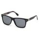 O modelo Roberto Cavalli RC 955S e um modelo unissex com armacao no formato wayfarer, produzida em acetato preto com detalhes em metal grafite Suas lentes cinza garantem estilo e protecao contra os raios UV