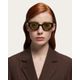Oculos de sol femininos em formato de borboleta, confeccionados em Eastman Acetate Renew, uma mistura de bioplastico derivado de polpa de madeira de origem sustentavel e conteudo reciclado recuperado de processos industriais A fresagem visivel da armacao cria curvas atraentes na parte superior Rebites metalicos na parte frontal unem a armacao as hastes, que exibem o logotipo da Ferragamo gravado a laser