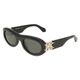 Oculos de sol femininos de formato oval com armacao robusta, adornada com o novo detalhe entrelacado Gancini nas dobradicas O modelo e feito de Acetato Renew, uma mistura de bioplastico derivado de polpa de madeira de origem sustentavel e conteudo reciclado recuperado de processos industriais As lentes sao feitas de materiais vegetais recuperados de residuos de madeira e de produtos agricolas