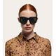 Oculos de sol femininos de formato quadrado com armacao robusta, adornados com o novo detalhe entrelacado Gancini nas dobradicas O modelo e feito de Acetato Renew, uma mistura de bioplastico derivado de polpa de madeira de origem sustentavel e conteudo reciclado recuperado de processos industriais As lentes sao feitas de materiais vegetais recuperados de residuos de madeira e produtos agricolas