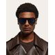 Oculos de sol masculinos retangulares modificados com um design contemporâneo distinto O novo elemento prismatico nas hastes caracteriza-se por efeitos lineares refinados, obtidos por um processo de fresagem de precisao, e uma placa com o logotipo da Ferragamo gravado a laser