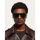 Oculos de sol masculinos retangulares modificados com um design contemporâneo distinto O novo elemento prismatico nas hastes caracteriza-se por efeitos lineares refinados, obtidos por um processo de fresagem de precisao, e uma placa com o logotipo da Ferragamo gravado a laser